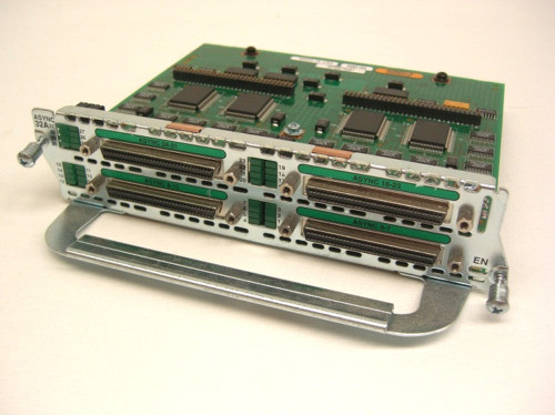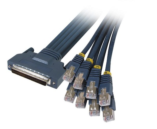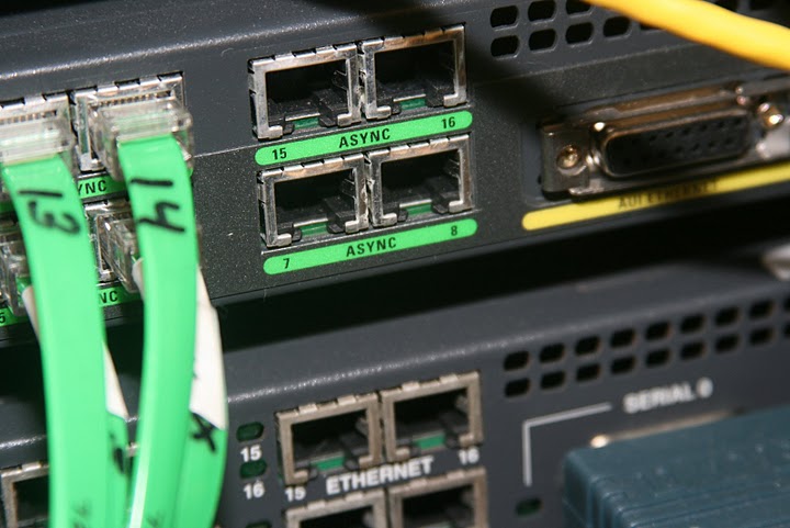 Whether your networking lab has 3 devices or 30 an access server, also commonly called a terminal server, is the vital connection between you and those devices. For this purpose most engineers use routers with asynchronous serial ports to connect to console (serial) ports on other devices. There are a couple of ways this can be accomplished as these ports can be found on a few devices and line cards. One of the popular methods is to use older Cisco 2509/2511 routers with either asynchronous RJ45 ports, or a 68 pin SCSI II interface that uses a cable called a cab-octal, giving you 8 ports per interface. Another popular method seems to be the NM-32A network module which offers 32 async interfaces. See the following images for a depiction of each.